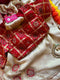 Shimmer ivory mirror work saree with red gharchola embroidered blouse