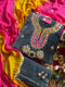 Mirror work crushed velvet grey suit set with gotta work and pure chiffon dupatta